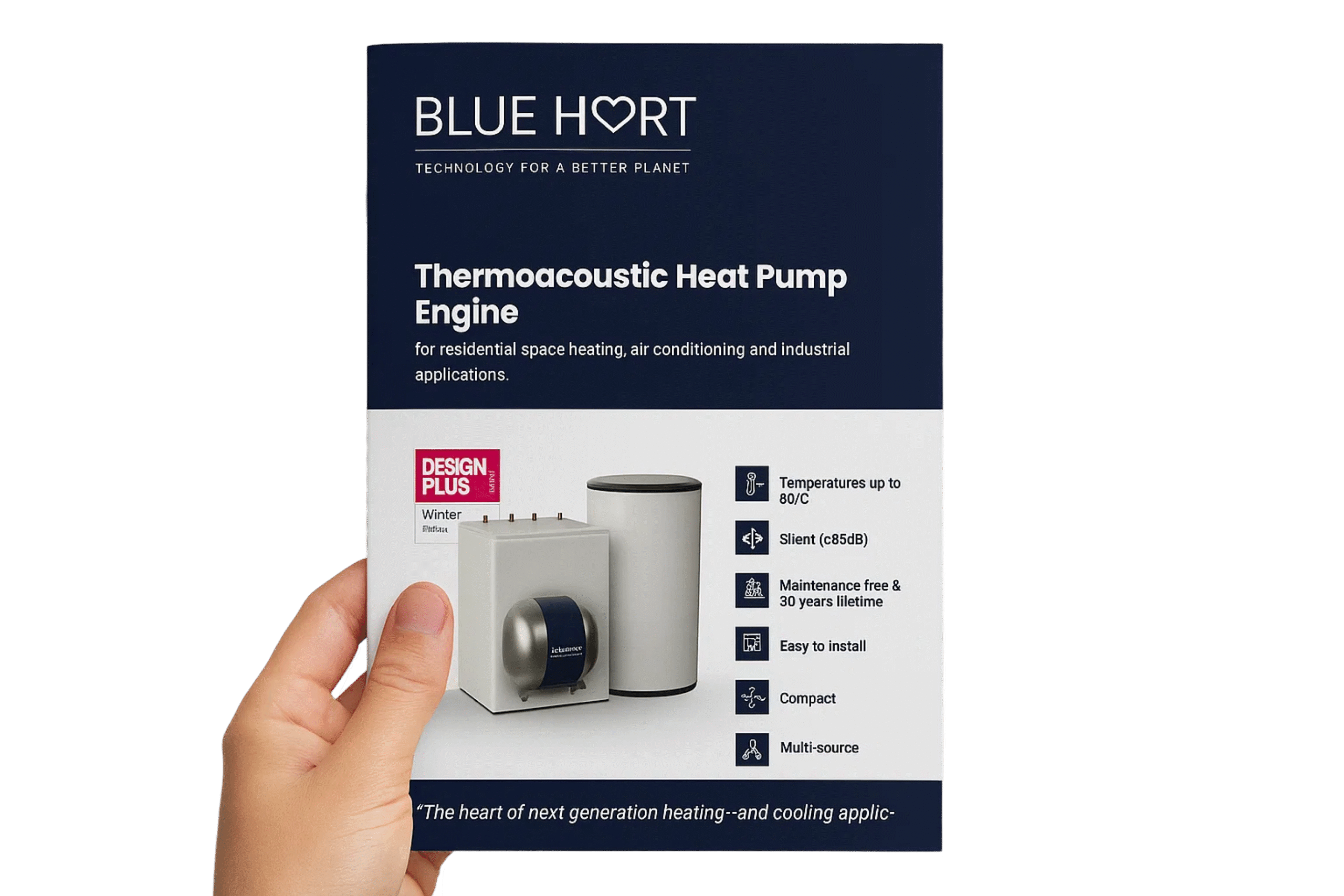 BlueHeart is an innovative thermo-acoustic engine that replaces traditional compression technology in heat pumps and
